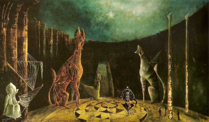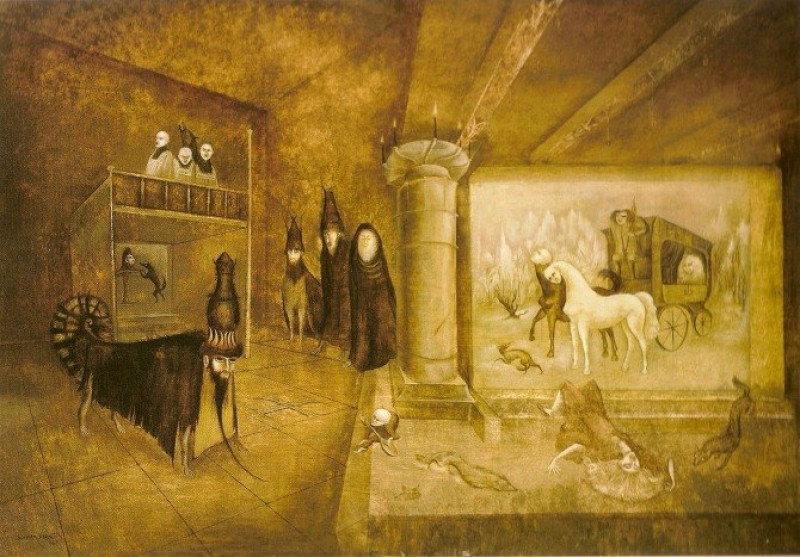 В её творчестве с самого начала чувствовалось влияние Босха, а так же были общие черты с Питером Брейгелем Старшим. Фантазия нидерландских художников не может оставить равнодушным никого, вот и юная Леонора вдохновилась образами старых мастеров. И если фламандские живописцы только предвосхищали сюрреализм, привнося какие-то метаморфозные силуэты в классическую живопись, то Каррингтон сознательно действовала в струе этого направления.