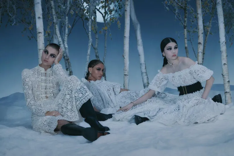 Однако горячее летнее настроение коллекции сменилось с приходом холодов. Для рождественского кампейна авторы выбрали только белое кружево, одежду и аксессуары с синим принтом. В объективе болгарского фотографа Элины Кечичевой модели кружились среди заснеженных берёз. «В этом ледяном царстве собраны неземные вещи, созданные Марией Грацией Кьюри, которые воплощают в себе чудеса праздничного сезона», — гласит подпись бренда в соцсетях.