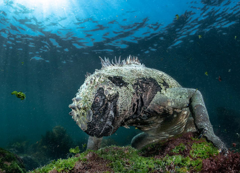 Пьер Манэ стал победителем в категории «Подводная жизнь». Он запечатлел морскую игуану у берегов Галапагосских островов. Игуана — единственная ящерица, способная дышать под водой. Они могут опускаться на 25 метров под воду на одном дыхании.