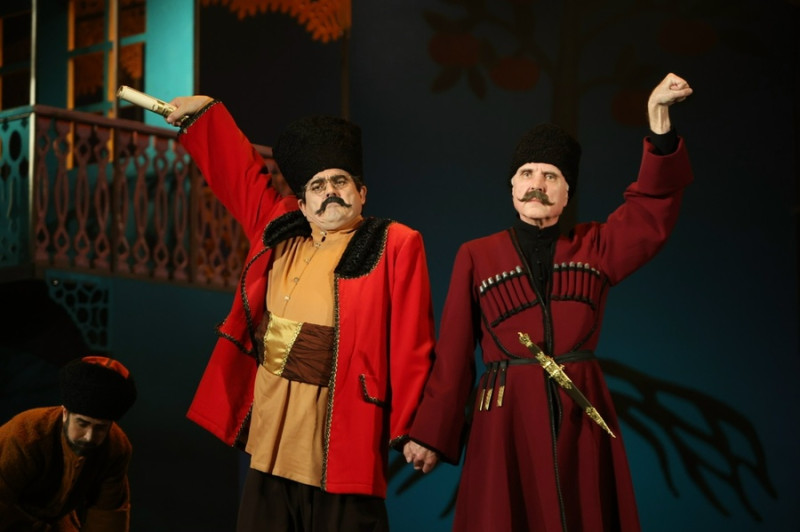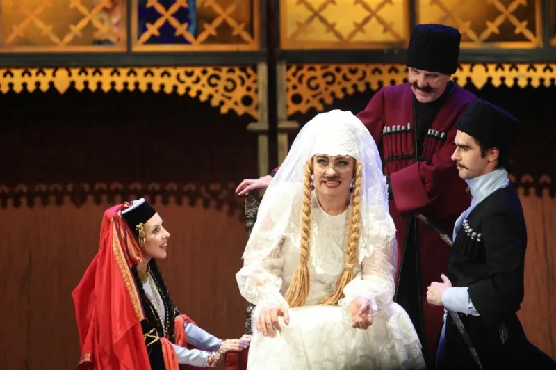 «Ханума» (12+) от художественного руководителя театра им. Луначарского Григория Лифанова, которую он, к слову, запустил 14 лет назад, а потом вывел из репертуара на четыре года, — очень напоминает топовые советские комедии Эльдара Рязанова и Леонида Гайдая.