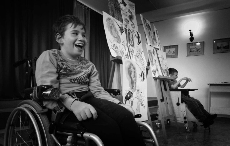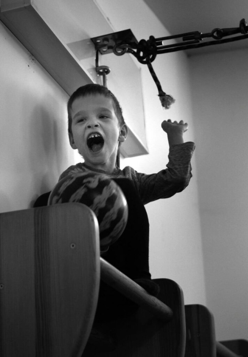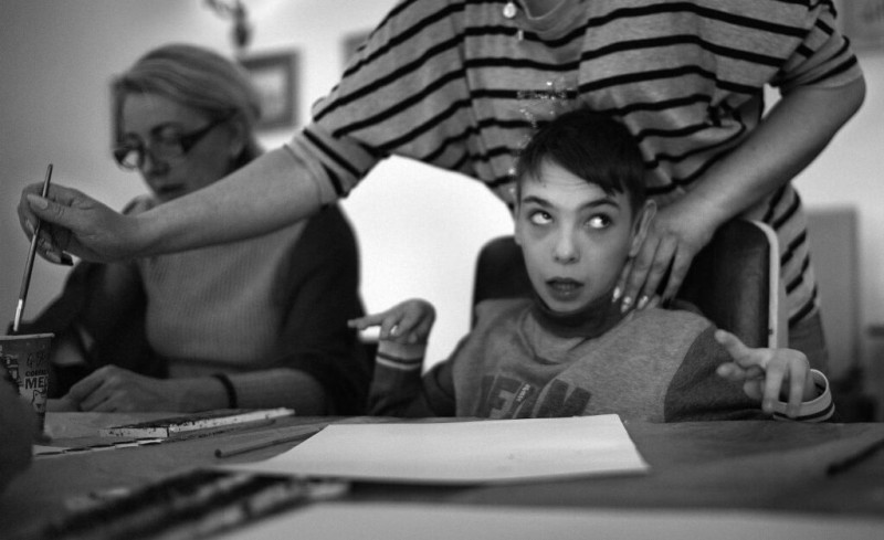 Эта серия работ севастопольского фотохудожника Леонида Матвеева называется «Реабилитационный центр для детей с ДЦП и аутизмом. Репортажная съемка». Работая над фотоочерком, автор провёл в центре больше месяца. Он снимал занятия, процесс реабилитации.