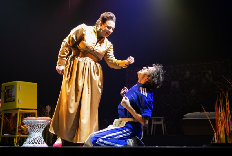 Несмотря на зрелый возраст главного героя спектакля Михайло Дмитрича Бальзаминова перед зрителем предстаёт по сути большой ребёнок, который во что бы то ни стало хочет разбогатеть.