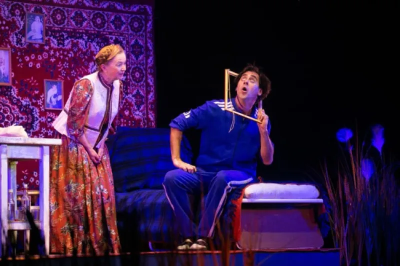 Скромная квартира со скудной мебелью, ковёр как пережиток советского прошлого, детские фотографии и главный герой в спортивном костюме — первые минуты спектакля могут резонно вызвать вопрос: «Неужели речь пойдёт о знаменитой женитьбе Бальзаминова»? Да! Несмотря на то, что все события перенесены в XXI век, сохранён оригинальный текст Островского. Задача режиссёра — заинтересовать спектаклем молодёжь, чтобы после просмотра постановки появилось желание обратиться к классике.