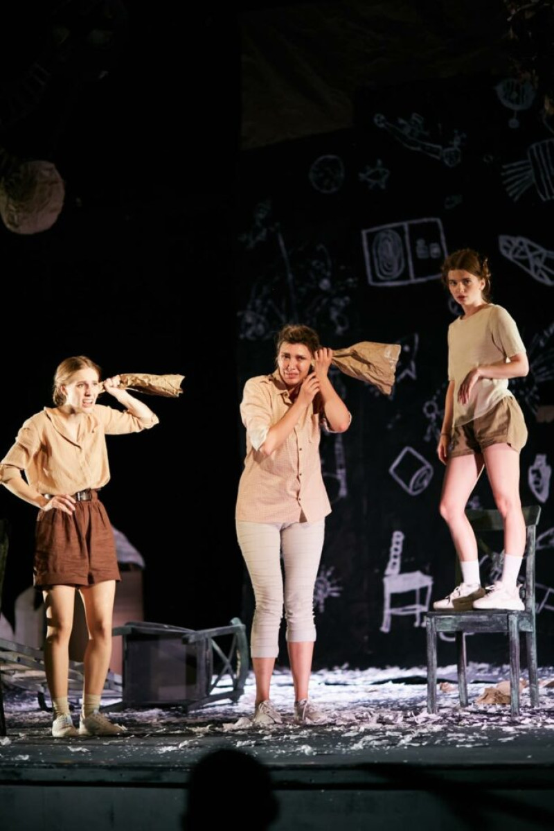 Так, например, в эскизе спектакля, который был показан в рамках лаборатории «ЭХО Большого Детского фестиваля», крылатая ракета, нарисованная Настей, воспитанницей «Театральной студии ТБМ», была выполнена из картона. Именно на ней учитель (Владимир Соловьев) объяснял строение ракеты.