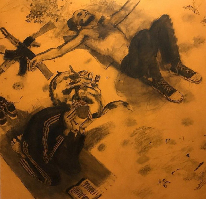 «Сделал новую веселую работу. Картина, которая ничего не рассказывает, но внимательно слушает», — представил свою картину художник на своей странице в фейсбук.