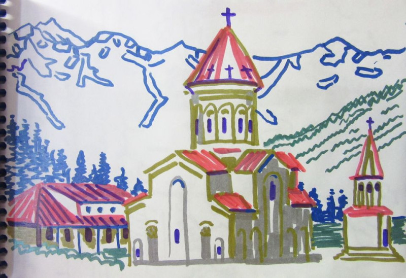 Теперь вот и наброски храма, привезенные из Грузии. Жизнь налаживается.