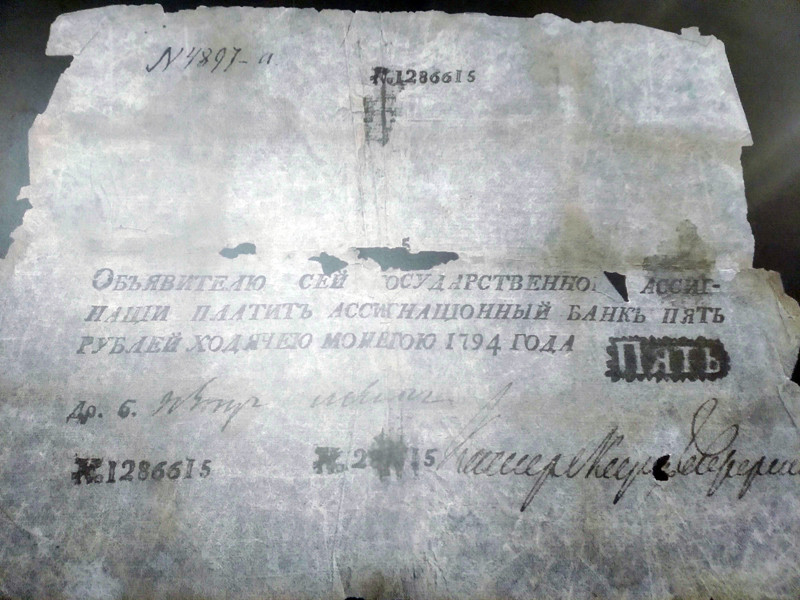 На выставке представлены репродукции отдельных образцов из собрания Музейно-экспозиционного фонда Центрального банка РФ – фотографии бумажных денежных знаков разного достоинства, начиная с 1794 года по 1961-й. Они дополнены короткими историями, которые отражают хронологию появления и «хождения» банкнот.