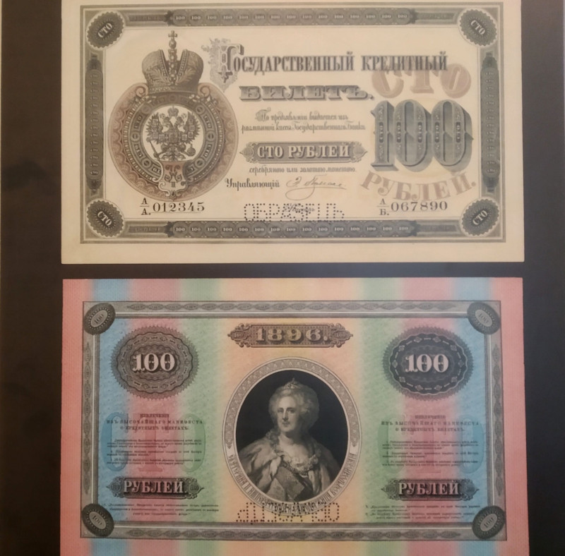До 1898 года самой большой по номиналу купюрой в Российской империи была так называемая «радуга» или «радужная». Так называли в народе сторублёвый кредитный билет из-за его разноцветного фона. На купюре был изображён портрет Екатерины II, взятый с оригинала австрийского художника Иоганна Баптиста Лампи Старшего.