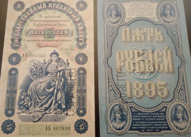 К примеру, первые пятирублёвые ассигнации появились в 1787 году. По оформлению они были похожи на английские банкноты, но в отличие от них печатались не на белой бумаге, а на синей. Цвет стал своего рода защитным признаком денег того времени и позволял неграмотным крестьянам безошибочно определять номинал купюры. Неслучайно в народе её называли «синенькой» или «синицей».