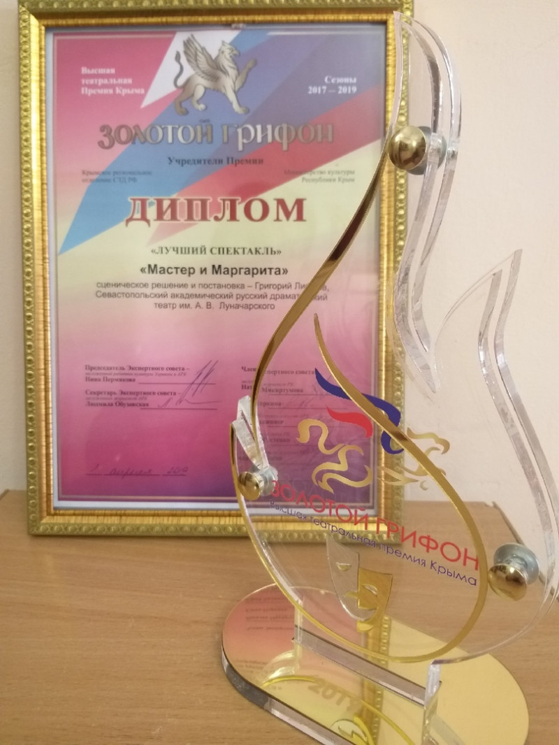 Высшей театральной премии «Золотой Грифон» в номинации «Лучший спектакль» был удостоен спектакль театра имени Луначарского в постановке Григория Лифанова «Мастер и Маргарита».