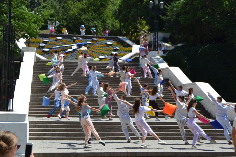 А ближе к финалу даже испытываешь какие-то эмоции, да и терапия видами родных мест, и наполняющими их красивыми жизнерадостными людьми также начинает неожиданно работать. Уже просто радуешься, что видишь на экране родные театральные лица: Евгения Чернорая, Глеба Козляева, Виталия Максименко. А компанию им составляют наши прекрасные танцевальные коллективы: в череде красочных флэшмобов мы видим и артистов театра танца им. В.А.Елизарова, и ансамбля Песни и пляски Черноморского флота, и шоу-балета «Карамель».