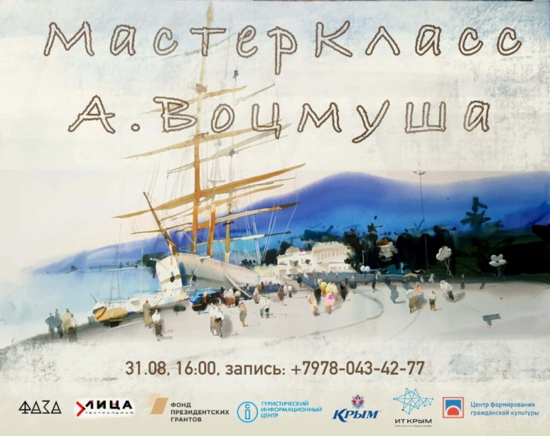 А в последний день лета, 31 августа, в 16:00 в куполе «Театральной улицы» состоится пятичасовой мастер-класс, который проведёт известный севастопольский художник Александр Воцмуш — автор тысяч акварельных произведений, обладатель неповторимого почерка. Сюжеты его акварелей цепляют за живое, находят отклик в зрителях всех полов, возрастов и вероисповеданий. Стоимость посещения мастер-класса – от 500 до 3500 рублей в зависимости от даты оплаты. С собой необходимо иметь акварель, палитру, пачку акварельной бумаги, кисти, цветные карандаши. Все подробности о посещении мастер-класса и его оплате можно узнать по номеру +7 (978) 043-42-77.