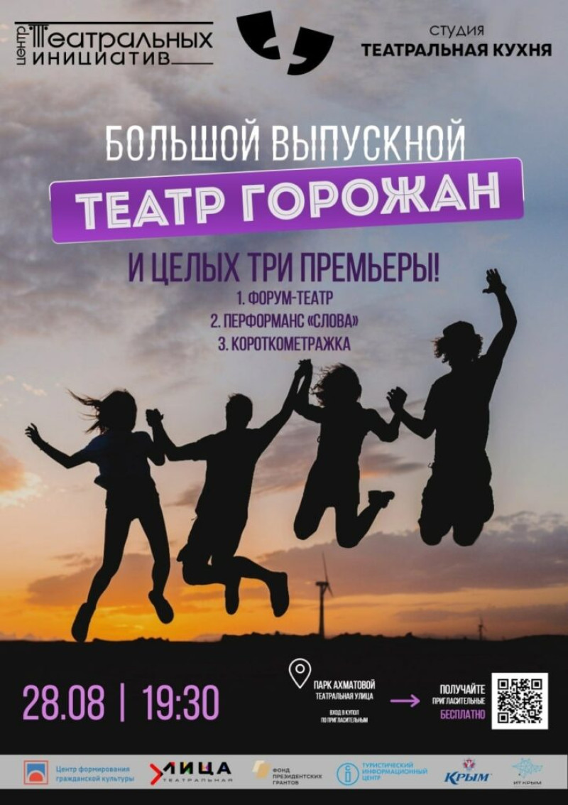 «Форум-театр — это новый для Севастополя формат, и мы хотим вас с ним познакомить. Что он представляет из себя и что вас ждет? Прежде всего — это короткая сцена (или несколько сцен), в основе которой ставится проблемные вопрос, затрагивающие и актеров, и зрителей. За всем процессом следит человек, не являющийся частью представления и стоит за его пределами. При этом он может разговаривать как с актерами, так и со зрителями. Его называют Джокер.