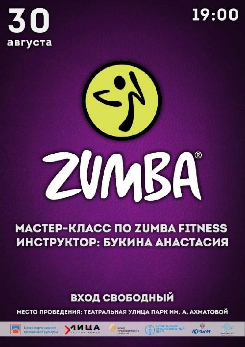 30 августа в 19:00 на «Театральной улице» пройдёт яркий и зажигательный мастер-класс по Zumba fitness. Его проведёт инструктор Анастасия Букина. Для всех собравшихся она устроит полноценную танцевальную фитнес-тренировку. Вход свободный. Единственное, что потребуется – взять с собой удобную одежду, сменную обувь и воду. Контакты для связи +7 (978) 716-48-33.