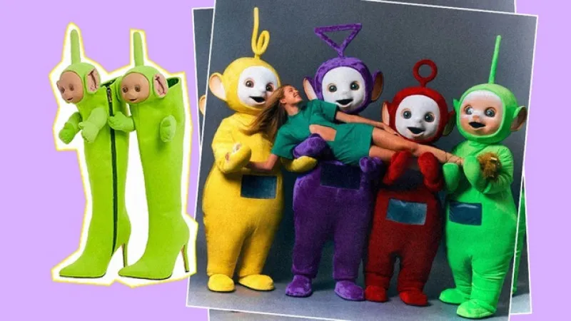 Затем у его бренда вышла совместная работа с популярными в Америке чипсами Doritos. Именно их острому вкусу Коуэн посвятил странные треугольные (как чипсы) наряды ярко-красного цвета, сплошь украшенные перьями. Но этого оказалось мало. И тогда родилась она — капсульная коллекция с Телепузиками.