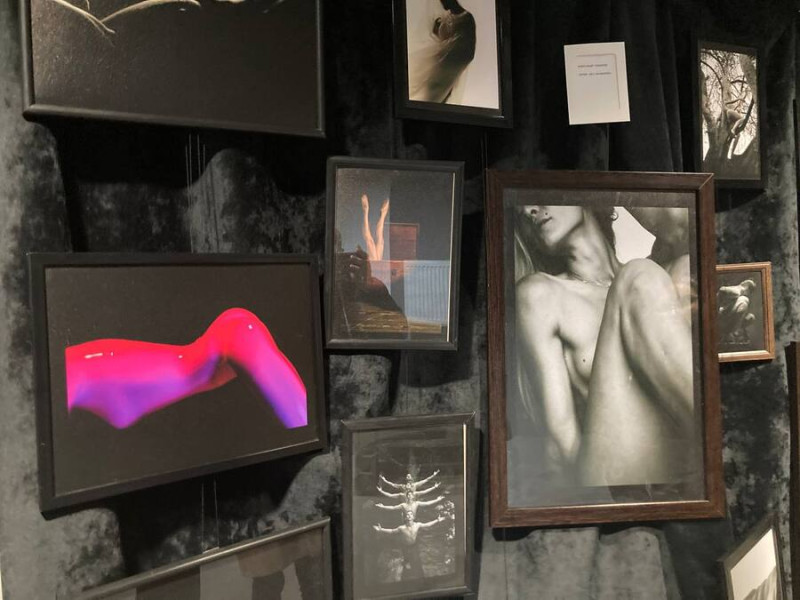 И на общем фоне телесности разительно выделяются абстрактные работы Дмитрия Бортниченко и Эмилии Мецтли. И если фотокарточки Дмитрия представляют собой набор цветных пятен и линий больших пространств и объектов, то снимки Эмилии миниатюрны, минималистичны, они точно про космос внутри, причём не человека, а предмета, с которым соприкасается человек.