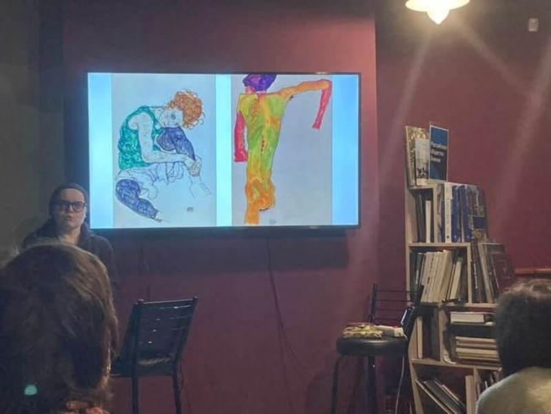 Горенкова также показала репродукции картин австрийского живописца Эгона Шиле (1890-1918), который специально вводил зелёный цвет в свои полупорнографические изображения. Он иллюстрировал низы общества и показывал всё нутро человека в очень сложном социальном мире.