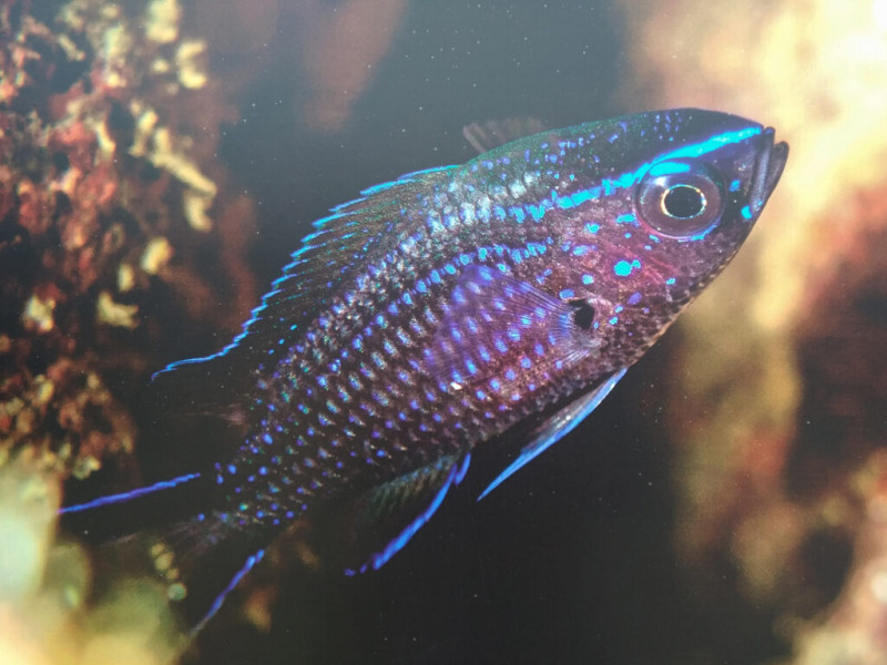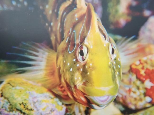 Над вершинами подводных скал образуют большие стаи морские ласточки. Огненными красками манит черноголовый троепёр.