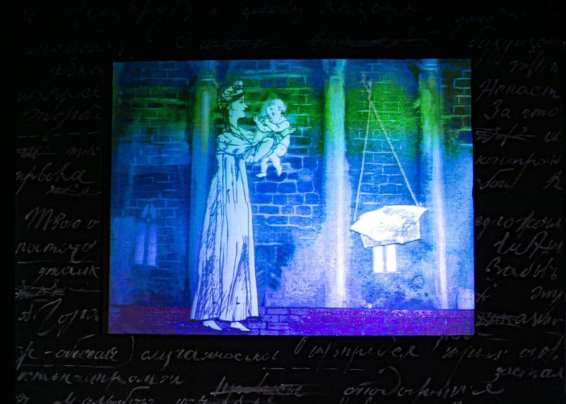 В сценической версии театра задействованы мультимедийные технологии. На экране оживают рисунки из рабочих тетрадей и дневников Пушкина. Возникающие перед зрителем персонажи тоже являются действующими лицами. Художник-постановщик спектакля Ирина Сайковская создала чарующий анимационный мультфильм, помогающий выстроить сюжетные линии и максимально вовлечь зрителя в происходящее на сцене. Наряду с визуальным приёмом, несомненно, удивит использование аудиального — голосового помощника Алёнки.