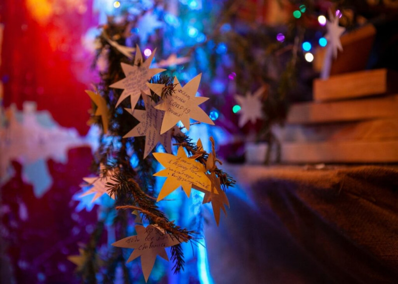 В лестничном проёме стоит высокая ель, украшенная Вифлеемской звездой. Все гости могут повесить на неё звёздочку, вырезанную из бумаги и написать свое заветное желание. Такие ёлки в Анненкирхе устанавливают каждый год.