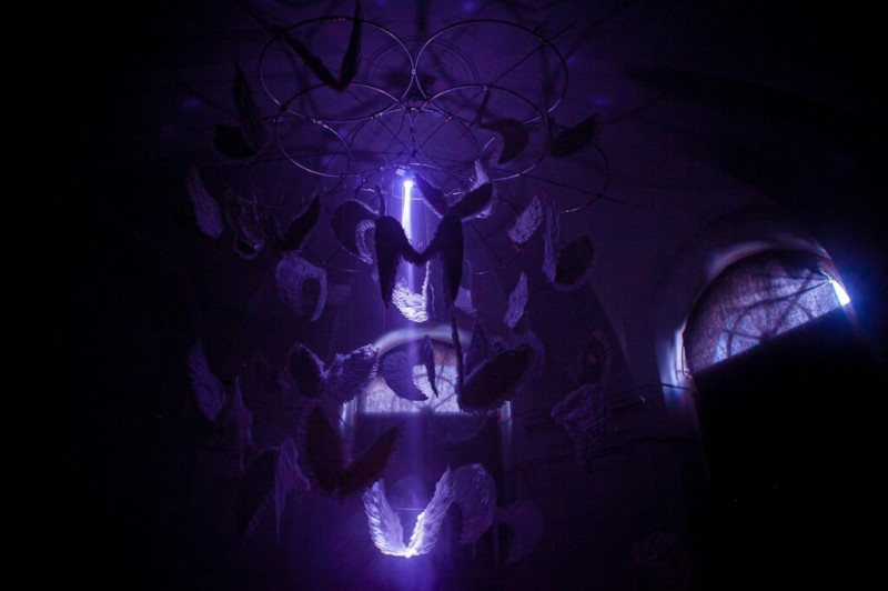 В ротонде находится поле пастухов – это к ним явились ангелы в ночном небе и известили о рождении Иисуса. На полу лежит приятно пахнущая солома, напоминающая о месте рождения Христа – хлеве. В воздухе – инсталляция из крыльев ангелов, а само помещение заполнено дымкой, что придает ему атмосферу божественности.
