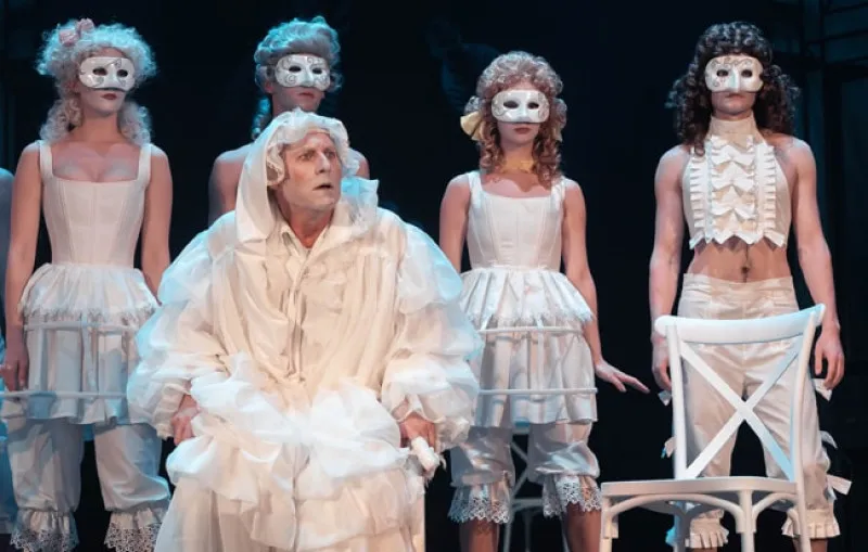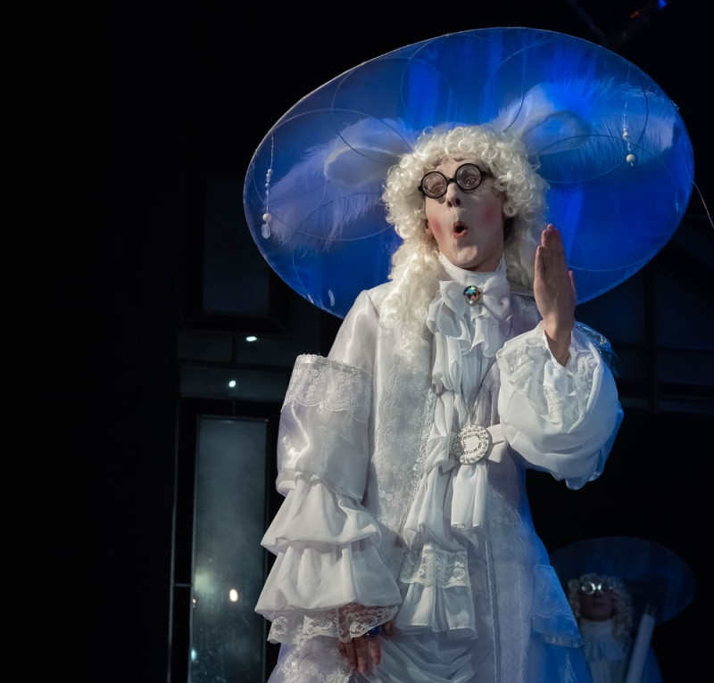 «Мнимый больной» Григория Лифанова – спектакль жеманный, но этот излом, эта манерность, не пошлые и не излишне вычурные. Жеманство здесь инструмент, которым работает режиссёр, и маска куртуазного жеста – та личина, за которой скрываются все смыслы и шарады.