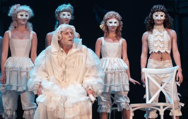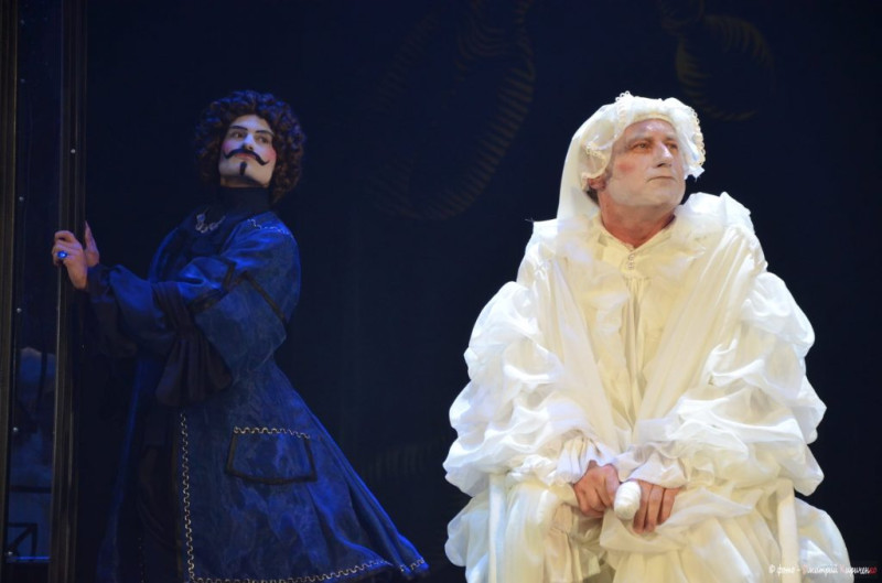 Спектакль порой пенится, словно шампанское, и жанрово, и стилистически. Комедия дель-арте, буколика, клоунада, водевиль – разлетаются на репризы, отыгрыши, миниатюры. А нижние юбки, корсеты, панталоны, старинные завитые и взлохмаченные парики, пышность, изящество – своего рода небрежное барокко, очень лёгкое, праздничное, шутливое и напудренное. Если это кремовый цвет, то чувствуешь вкус сливок, если ультрамарин, то он роскошный и чувственный. Костюмы Ники Брагиной играют свою великолепную роль: они соблазняют и делают мольеровских героев пикантными, желанными. Режиссёр зачастую балансирует на грани, когда, казалось бы, ещё один шаг – и на сцене запахнет непристойностью, но у Лифанова, я уже и раньше об этом говорил, хороший вкус, вкус хулигана-эстета, вкус, умело комбинирующий позавчерашний день с сегодняшним, притом не теряя прошлого и не рискуя настоящим.