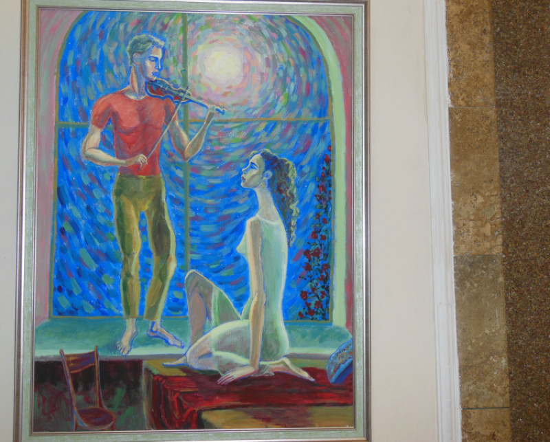 Наряду с натюрмортами и пейзажами, выполненными в различных техниках, в экспозиции представлены и сюжетные картины. Картина Марии Старосельской «Серенада» — автобиографическая работа художницы.