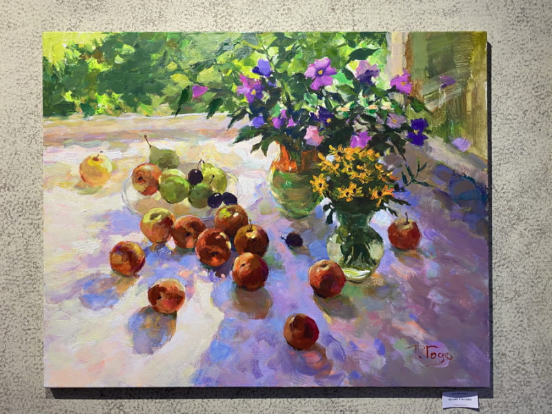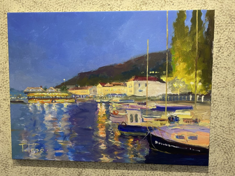И, действительно, на какое бы полотно художницы не падал взгляд, начинаешь подзаряжаться от гармоничного сочетания красок, дарящих ощущение тепла и какого-то душевного уюта, порой даже не совсем привычного. Балаклавский причал, обласканный густыми сумерками, залитая лучами набережная Фороса; персики и мальвы, принимающие солнечные ванны; крымские горы, утопающие в летней зелени – мир, застывший в картинах Годовальниковой, безусловно, пропитан любовью к родному краю. Солнцем, которого ей так не хватает в столице, художница щедро одаривает почти каждый свой холст.