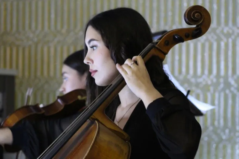 Когда роскошный зал заполнился гостями, на сцену вышел камерный оркестр «Новая гармония» во главе с Денисом Карловым — художественным руководителем и главным дирижёром.
