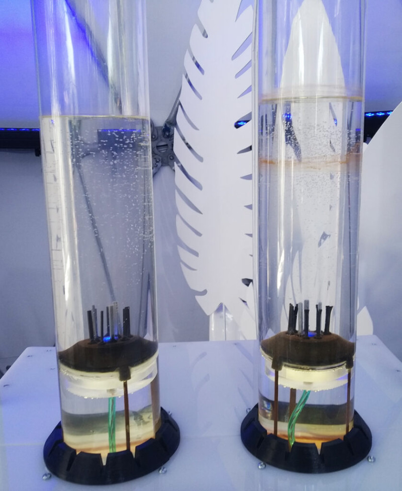 В его основе процесс, знакомый ещё с уроков физики и химии — электролиз. Под действием архимедовой силы пузырьки отрываются от электродов и устремляются к поверхности. Это один из методов получения водородного топлива.