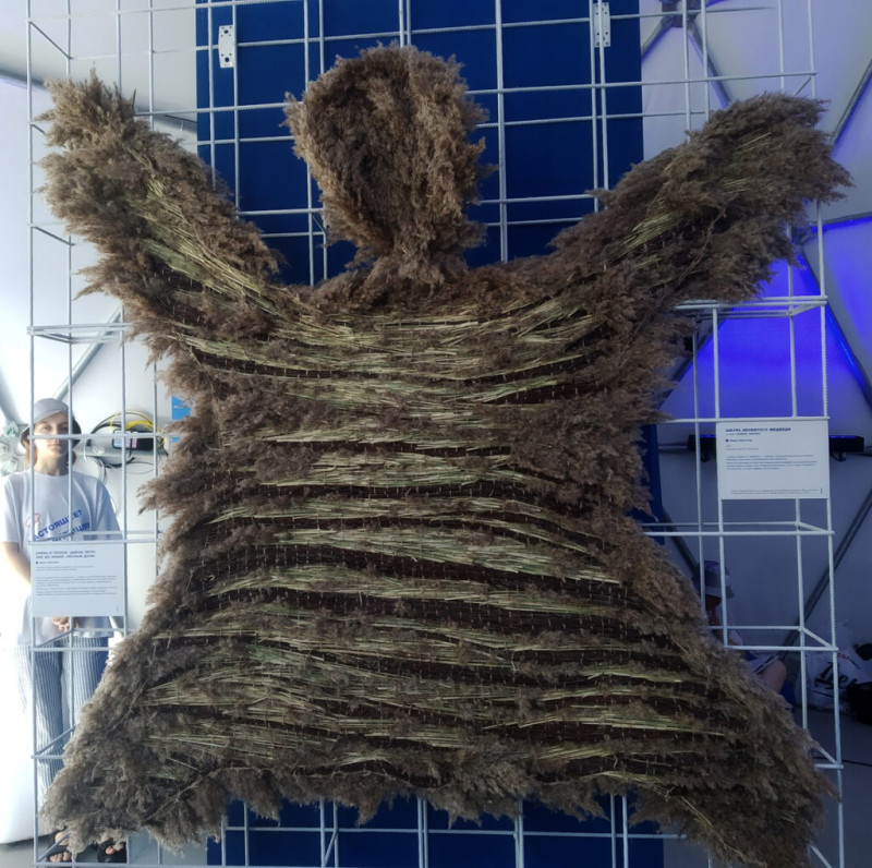 Эко-творческий подход применила Вера Занегина. Гобелен «Шкура неубитого медведя» соткан вручную из метёлок болотного тростника. При создании этой шкуры ни один медведь не пострадал.