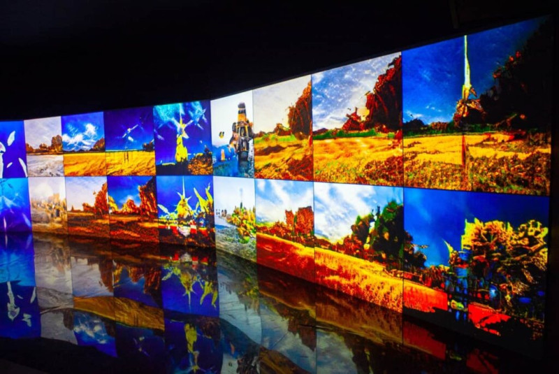 На выставке есть зал для медитации. Это аудиовизуальная инсталляция, посвящённая восприятию природных явлений. Медитативно развивающиеся изображения на экране и звуки создаются двумя нейронными сетками. Одна была обучена на сотнях тысяч изображений из Flickr разных элементов Вселенной. Другая – на базе часов религиозных и духовных песнопений, взятых с YouTube. Автор инсталляции — художник и инженер из Лондона Мемо Актен.