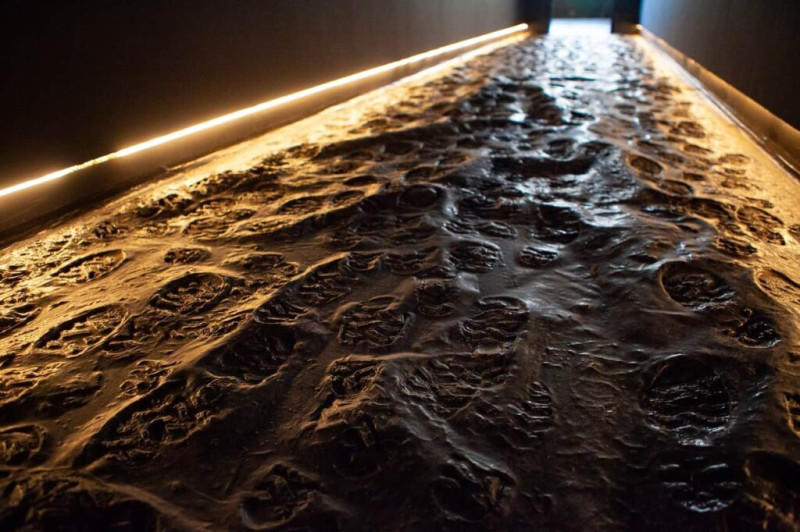 Инсталляция «Искусственная грязь» представляет собой имитацию покрытия со следами обуви на грязи. Когда человек идёт по коридору — поверхность движется. Художники старались создать ощущение пустоты, экологической катастрофы, которую мы видим глазами машин.