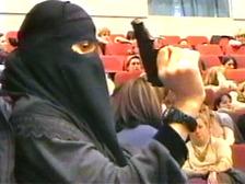 Эти кадры сняли сами боевики летом 2002 года. Встреча организаторов и исполнителей теракта. Мовсар Бараев и араб Ясир, Аслан Масхадов, а слева от него полевой командир Сейф Ислам, инструктор по подрывному делу, ближайший помощник Хаттаба. Здесь же главный финансист боевиков — Абу Омар, представитель "Аль-Каиды" на Кавказе.