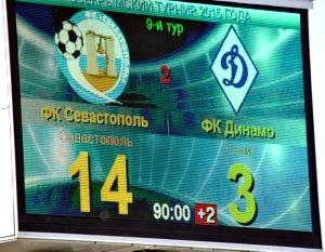 Приехавшие на встречу заключительного тура группового этапа Всекрымского турнира футболисты сакского «Динамо» не смогли справиться со шквалом атак, неудержимых в этот вечер игроков «Севастополя». 14 июня, в День рождения своего любимого Севастополя, футболисты одноимённого клуба подарили горожанам 14 забитых мячей, завершив встречу 9-го тура с общим счётом 14:3, что является рекордом результативности в этом турнире.