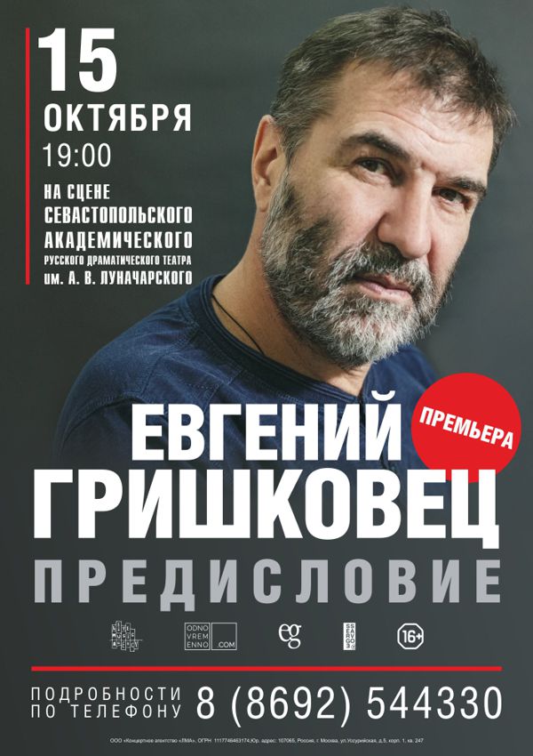 А ещё я хочу сделать на сцене то, с чего я когда-то начинал свою сценическую деятельность и то чего почти тридцать лет на сцене не делал". Евгений Гришковец.
