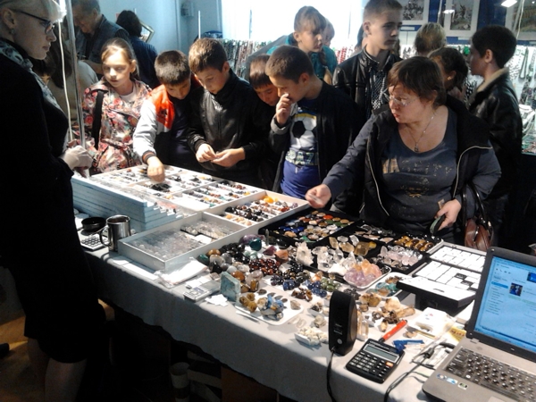 "На детских столах - литература для начинающих и коллекции минералов как для новичков, так и профессионалов". Почему материалы для профессионалов на "детских столах"?!.