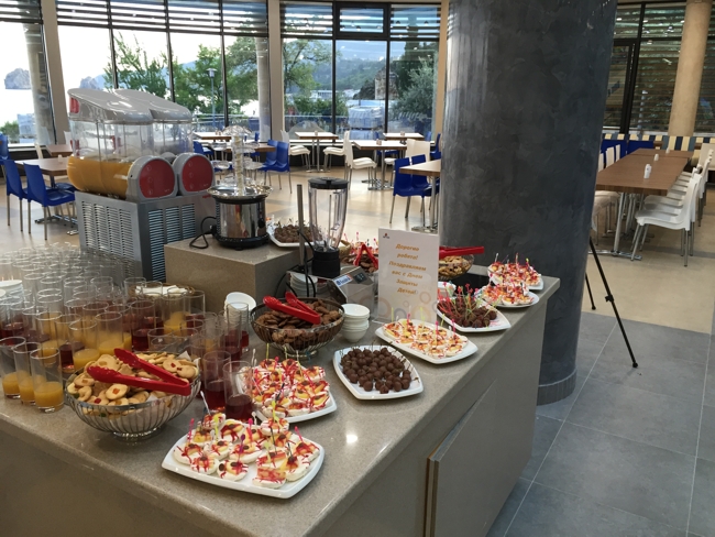 «Радует, что есть выбор, ну и, конечно, вкусно готовят. Всегда овощи, свежие фрукты, салатики. Дочке все очень понравилось. Особенно аниматоры в столовой!»