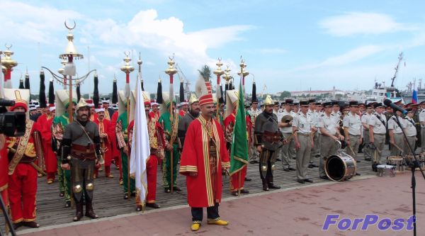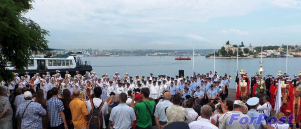 Правую часть Графской пристани отдали россиянам – морпехам, штабу КЧФ и оркестру гостей из Ростова - ЮВО. Левую – украинским музыкантам: Симферопольцам, академии им.Нахимова и Центру искусств ВМСУ. Вся центральная часть находилась в распоряжении уважаемых зарубежных гостей – огромному по количеству музыкантов и артистов военно-историческому оркестру Турции МЕХТЕР, Французскому оркестру сухопутных войск из Лиона, оркестрам военных лётчиков из Греции и Германии.