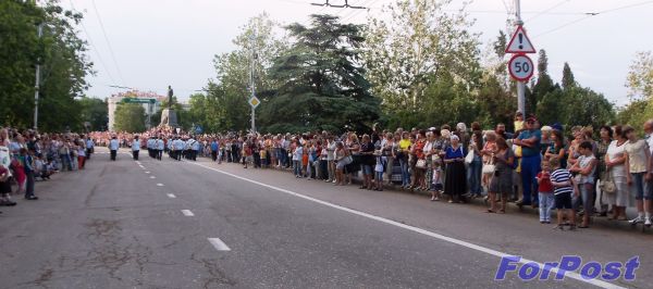 IV Международный фестиваль военных оркестров собрал рекордное количество севастопольцев и гостей. На улицах центрального городского кольца яблоку негде было упасть! Излюбленные «точки обзора» - постамент памятника Нахимову, ступени Матросского бульвара и городской Доски Почёта – были оккупированы зрителями задолго до начала парада. Они стояли по обеим сторонам проезжей части на всем пути следования парада.