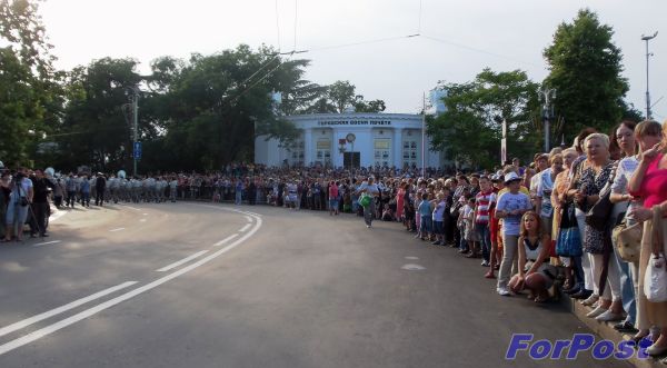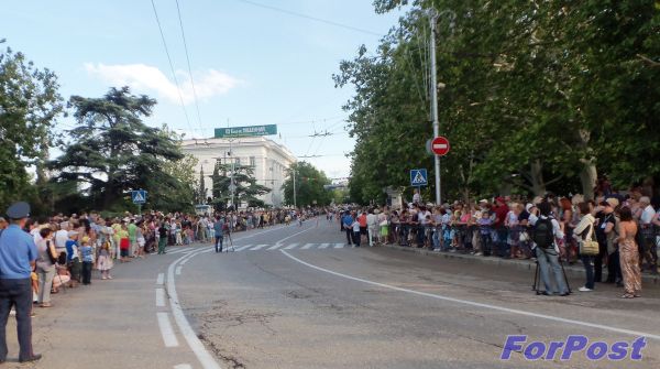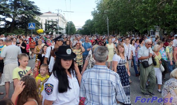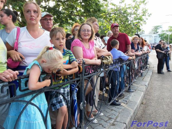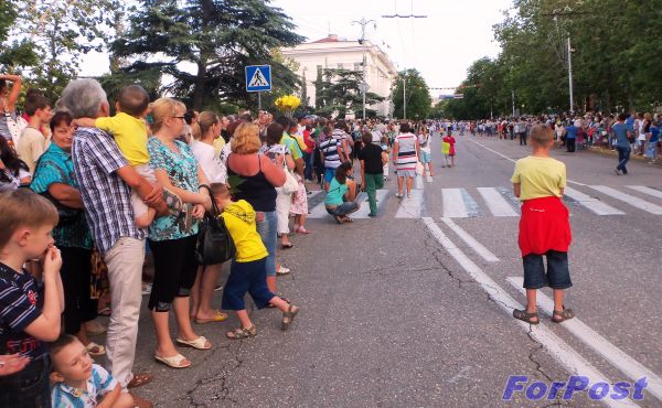 По мнению сотрудников милиции общее количество жителей, вышедших на улицы Севастополя посмотреть марш-парад военных оркестров, достигало 50 тысяч человек