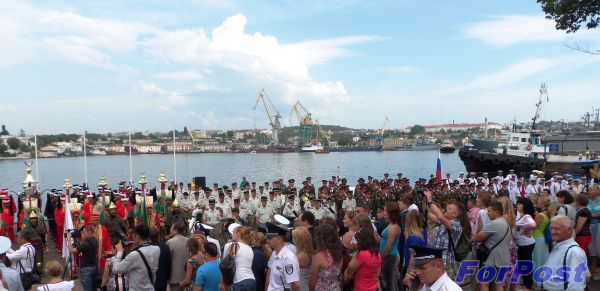 Праздник если удался, то только по севастопольским меркам. Для настоящих дефиле военных оркестров в городе просто нет подготовленных площадок. Стыдно смотреть на разбитый, потрескавшийся асфальт в самом центре Севастополя, по которому прошли иностранные оркестры. Интересно, где разместили всех оркестрантов???