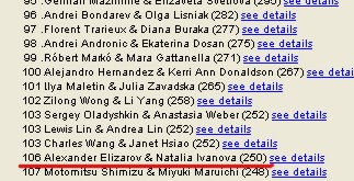 И еще - иметь 106 место по всемирному рейтингу среди 459 пар это тоже круто для "ЧЕМПИОНА МИРА".