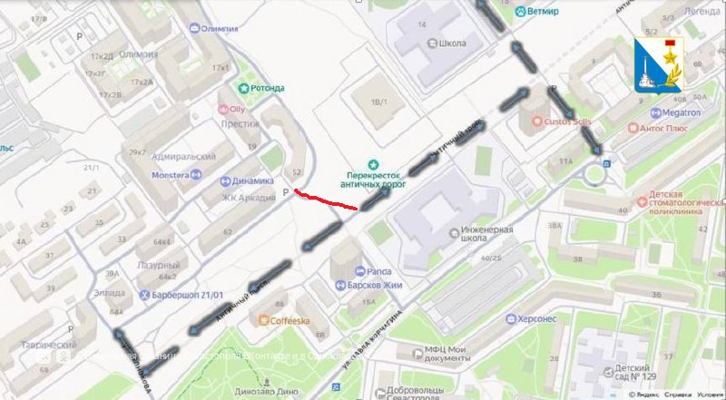 Напомним: пустырь, примыкающий к строящейся дороге на Античном проспекте, является фрагментом древней хоры Херсонеса Таврического, защищённый статусом объекта культурного наследия. Соответственно, проводить какие-либо земляные работы здесь запрещено.