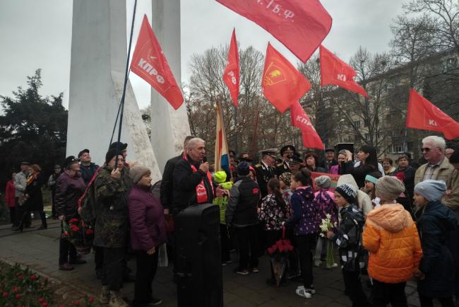Поздравив собравшихся с Днём космонавтики, руководство севастопольского реготделения КПРФ дало слово секретарю по идеологии Сергею Курочкину, который решил исполнить подходящую по случаю песню «Гагарин Балаклавы». Песня была написана в 2011 году и посвящена Герою России, севастопольскому лётчику-космонавту Антону Шкаплерову.