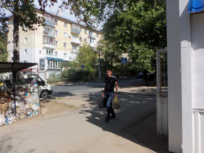 На этом изменения на «бойком месте» не закончились. Видимо, администрация Гагаринского района, памятуя о законе сохранения массы, «порешила», что если в одном месте убывает, то в другом должно обязательно что-то прибавиться. Поэтому, к удивлению местных хозяек, распахнул свои двери заколоченный с весны овощной павильон, о котором тоже писалось в статье. Правда распахнул аккурат на … площадку временного складирования бытовых отходов, подтвердив тем самым, что санэпидстанция наверняка не позволила бы это сделать официально. Да и сами двери никто даже не удосужился помыть к торжественному открытию, продавца – обрядить в передник, мусорный совок и веник – убрать подальше от продовольственного товара, прилавок - насытить качественным осенним ассортиментом, а в «красном углу» павильона - снять к новоселью ленту с налипшими мухами.
