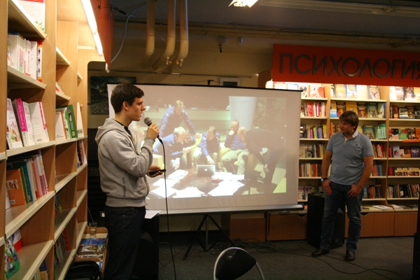 По окончании презентации удалось поговорить с Евгенией Скибинской – еще одним представителем агенства «Клуб путешественников Крыма». Евгения сообщила, что нынешний вечер – лишь первый из целой серии задуманных проектов: апельсиновый информационный супермаркет выбран в качестве площадки неслучайно, потому как турагенство ориентируется в первую очередь на креативную молодежь (именно такие люди, по мнению Скибинской, составляют большинство посетителей "Атриума").