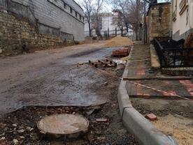 Улица Героев Севастополя не зря носит такое название. С недавних пор ее превратили в полигон, где на легковых машинах могут передвигаться только герои. Вывороченные с корнем водопроводные люки, ямы – все это появилось после «спецоперации» дорожных служб, произведенных также внезапно. Следов техники нет.