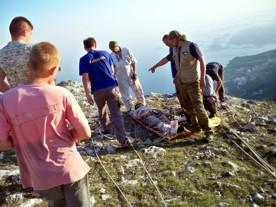 Инструктор спасслужбы Сергей Плотицын отмечает, что падение камня вызвало травматическую ампутацию пальцев правой ноги, скальпированные раны голени и переломы костей. Решение было однозначным – поднимать страдальцв на вершину, а потом машиной доствить в больницу села Орлиного в Байдарской долине. Добраться к пострадавшему оперативно удалось благодаря внедорожнику спасателя-общественника Юрия Круглова. Мастер спорта, Снежный Барс, участник многочисленных спасработ в различных горных системах мира хорошо знает маршруты Крыма.